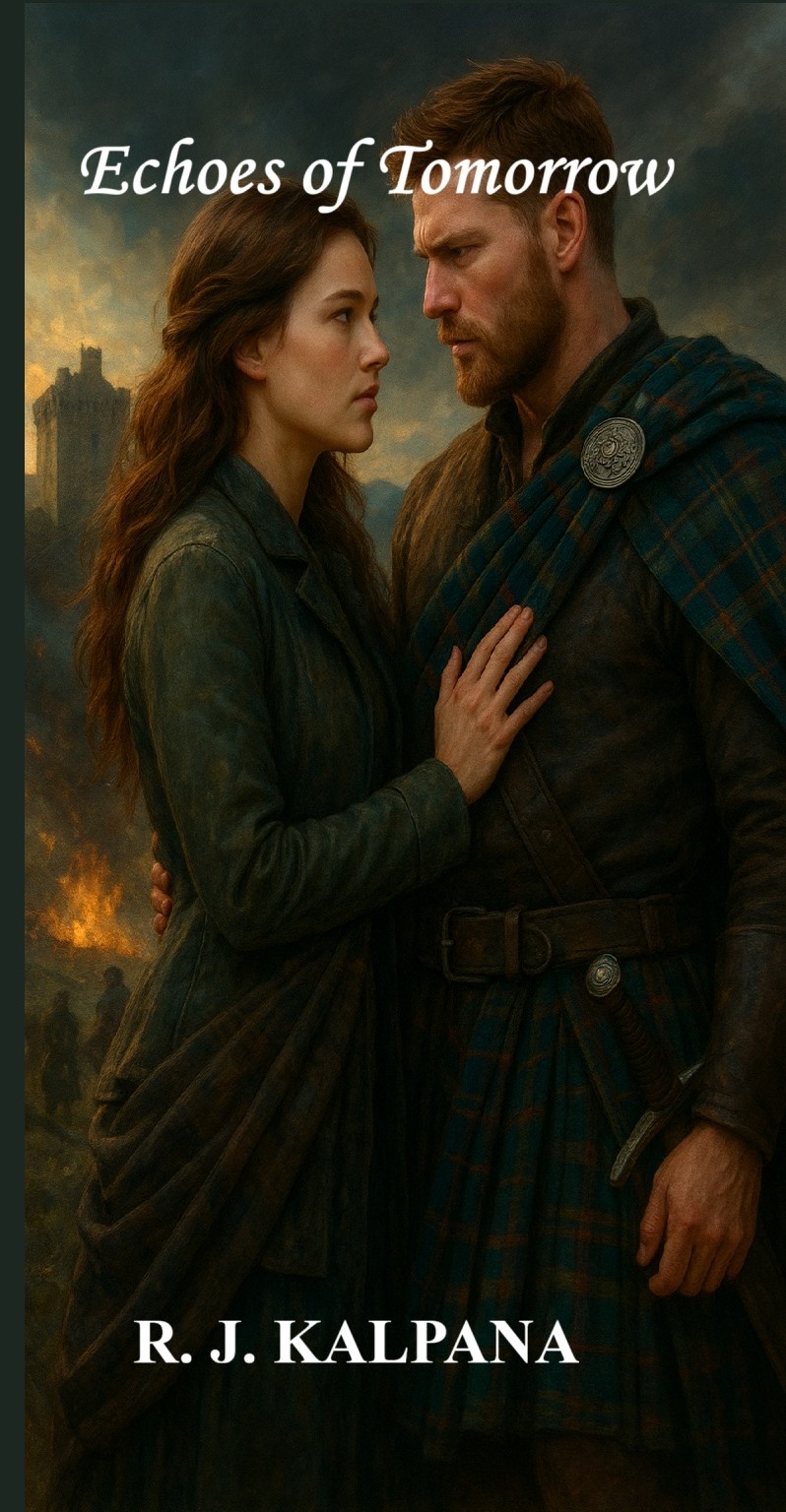 When modern-day historian Isla Macrae is pulled through time to the misty Highlands of medieval Scotland, she finds herself in the midst of clan wars, ancient prophecies, and a world far removed from her own. There, she meets Alaric MacAlister, a fierce and enigmatic laird whose heart is as untamed as the storm-lashed cliffs of Ardmore. Drawn together by danger, fate, and a mysterious torc that pulses with visions of past and future, Isla and Alaric must navigate betrayal, battle, and the fragile threads of destiny. As the torc’s power grows, Isla faces an impossible choice: save the man she loves and the castle he defends or risk losing everything. Echoes of Tomorrow is a sweeping, sensual, time-bending romance of love, courage, and sacrifice across centuries.