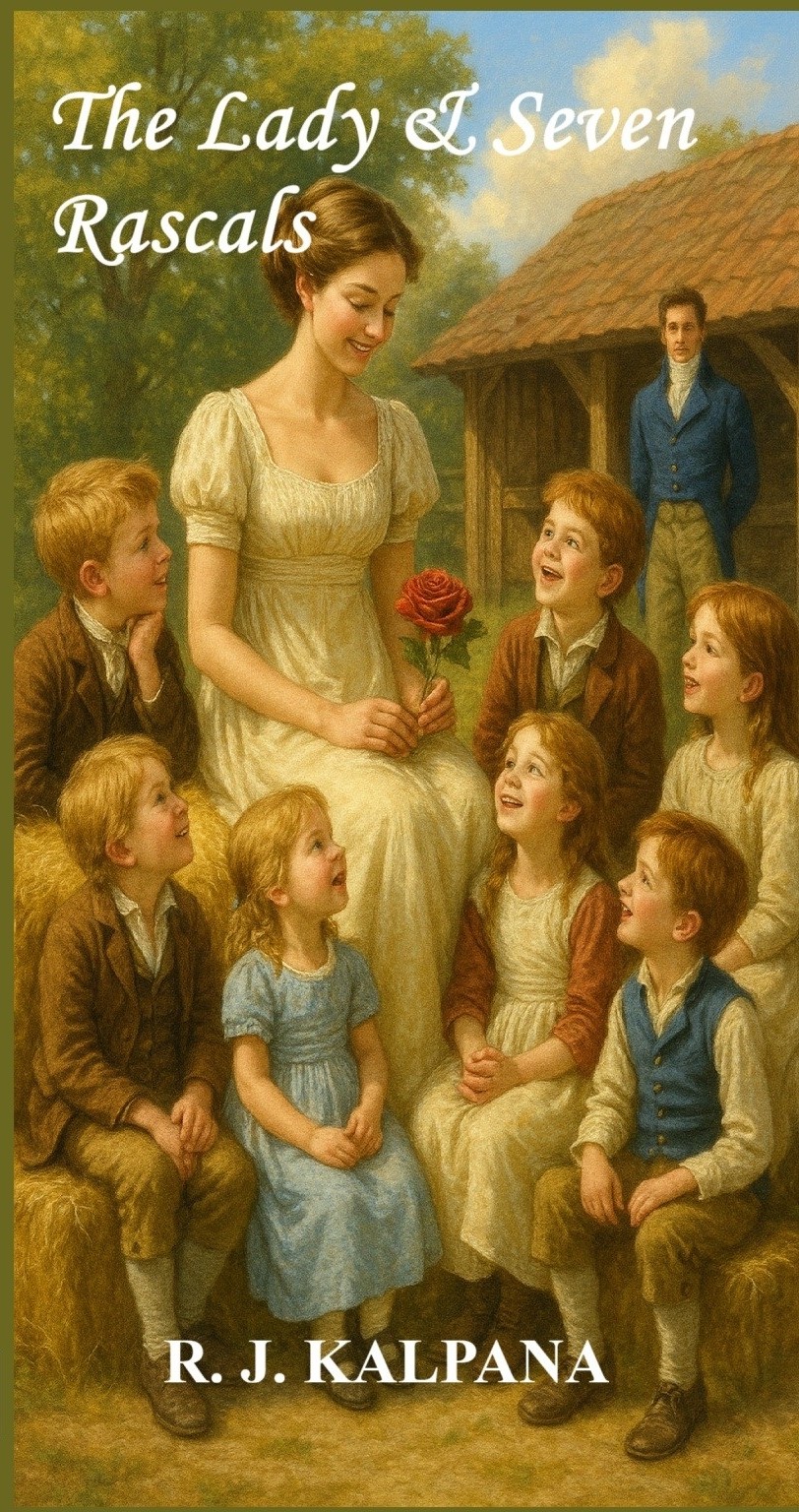 Lady Samantha Bayham thought she was stepping into a proper household as a governess. She was wrong. Very, very wrong. Camden Hall is home to seven mischievous children who consider chaos a team sport, a harried Earl who looks like he hasn’t slept in a decade, and a house that seems to conspire against her at every turn. Add in a jealous stepmother with a flair for drama, a flirtatious local widow, and more social balls than anyone can count, and Amelia’s life becomes a whirlwind of spilled tea, runaway pets, and clever pranks. Yet through it all, she finds herself outwitting everyone—including the brooding Earl—while somehow teaching seven children that manners are optional… sometimes. By the end, hearts are captured, lessons are learned, and laughter reigns supreme.